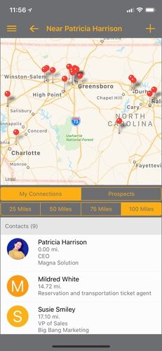 The contact overview has the information that you can see at a glance, including what open opportunities or appointments are coming up. You can add multiple opportunities or deals to a contact, including quotes, building your relationship with the prospects, leads, or customers, and not tracking single deals. Another advantage of our mobile platform is offering features like mapping, not typically found in a CRM.