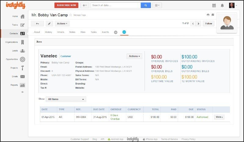 With a strong focus on integrating sales and project management, Insightly CRM has been built to make tracking and organizing all aspects of the customer relationship process easy to manage and visualize through a fully customizable interface.