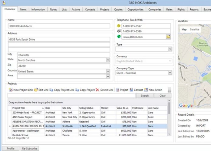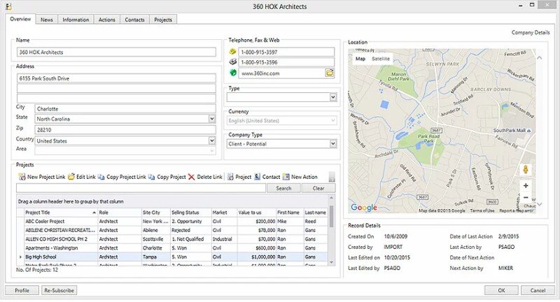 Data loading tools are geared up towards importing data from project lead information providers such as Dodge and Reed. Another key feature is the powerful ‘drag and drop’ interface that allows users to add functionality to CRM tools as and when required. Project-SalesAchiever has also been designed to integrate easily with third-party ERP solutions including Avante, SAP, and Oracle.