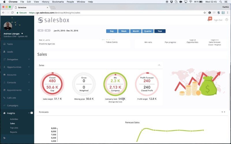 Salesbox was created for collaborative sales teams who are looking for a mobile-friendly, agile sales tool that is centered around “people, numbers, and focus”. Marketed as an alternative to clunkier traditional CRM packages, Salesbox aims to gather the data required for its users to make smarter sales decisions.