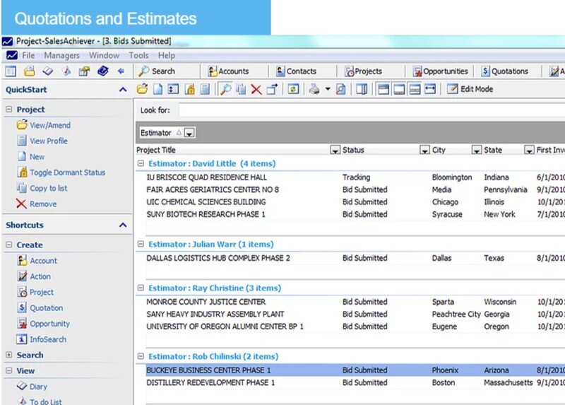 Project-SalesAchiever CRM has been developed specifically to be used by construction companies both in the office and in the field. It allows sales staff to manage construction-specific sales processes via an intuitive workflow and interface. The front-end user is at the heart of the design and ease of use is an important facet.