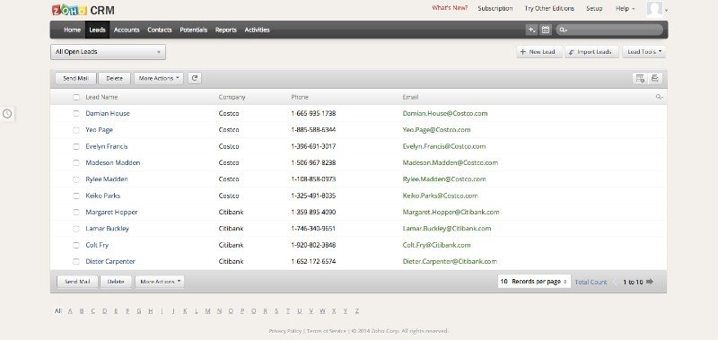 Zoho CRM is a cloud-based software package aimed at small to medium-sized businesses. Companies can download the software for free for up to 10 users, making it suitable for firms new to CRM.